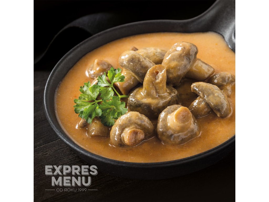 Na másle restované čerstvé žampiony s krémovou smetanovou omáčkou.
